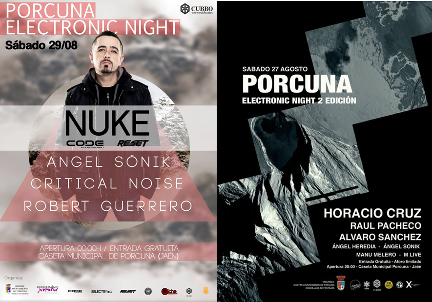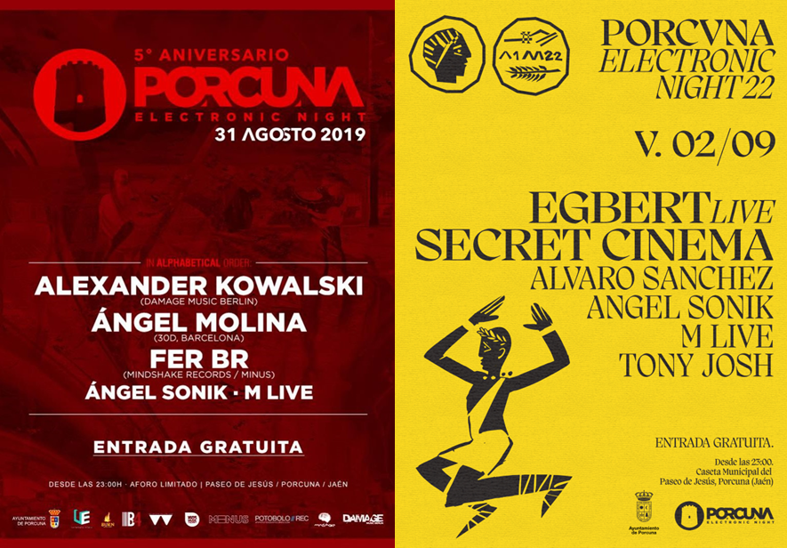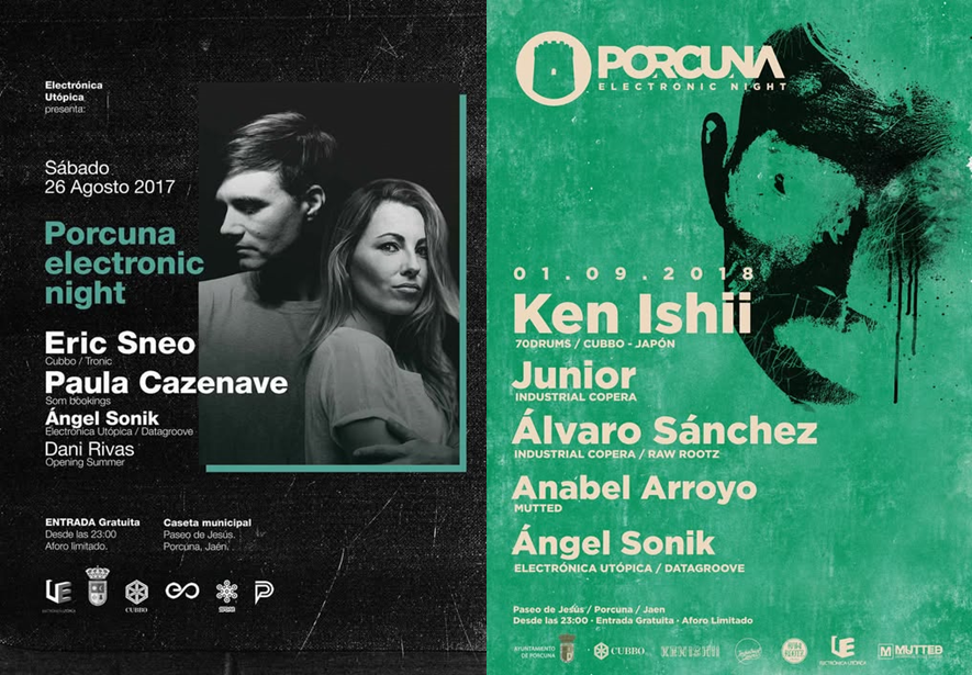 Carteles de la 3ª (2017) y 4ª (2018) edición de Porcuna Electronic Night