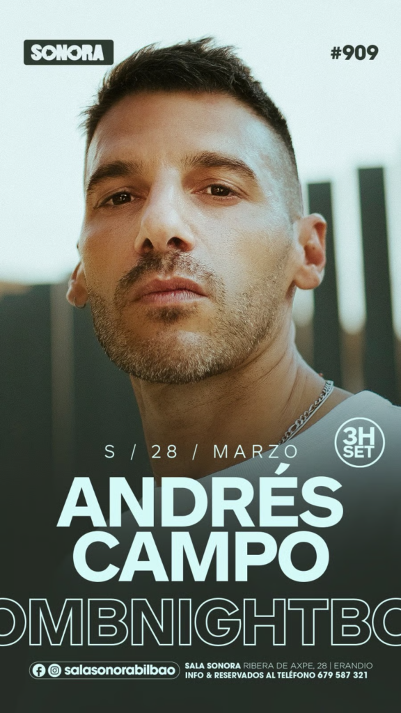 El calendario de esta temporada incluye dos nombres que ya forman parte de la historia reciente de la sala. El primero de ellos será Andrés Campo, que regresará a Sonora el sábado 28 de marzo. El DJ aragonés se ha convertido en uno de los artistas nacionales más queridos por el público del club, gracias a su capacidad para conectar con la pista y a un estilo que combina techno contundente con influencias rave y espíritu noventero.